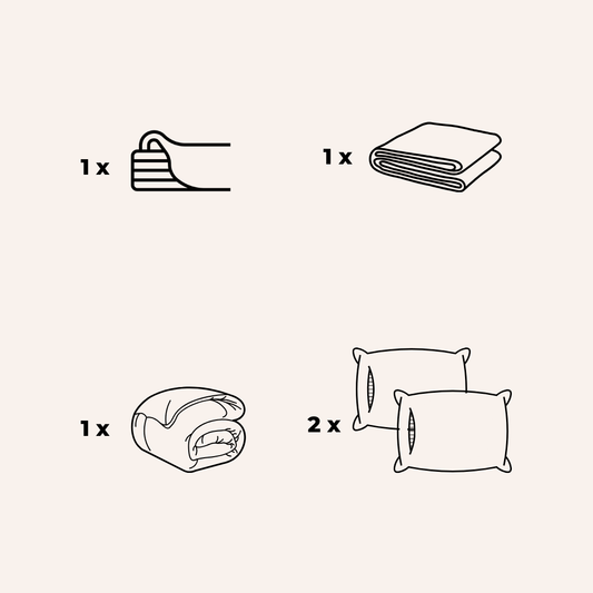 Inclut : 1 housse de couette + 1 drap de dessus + 1 drap housse ajustable + 2 taies d'oreiller.Prix habituel À partir de €148Prix habituelPrix unitaire par€248Prix promotionnel À partir de €148-40% -