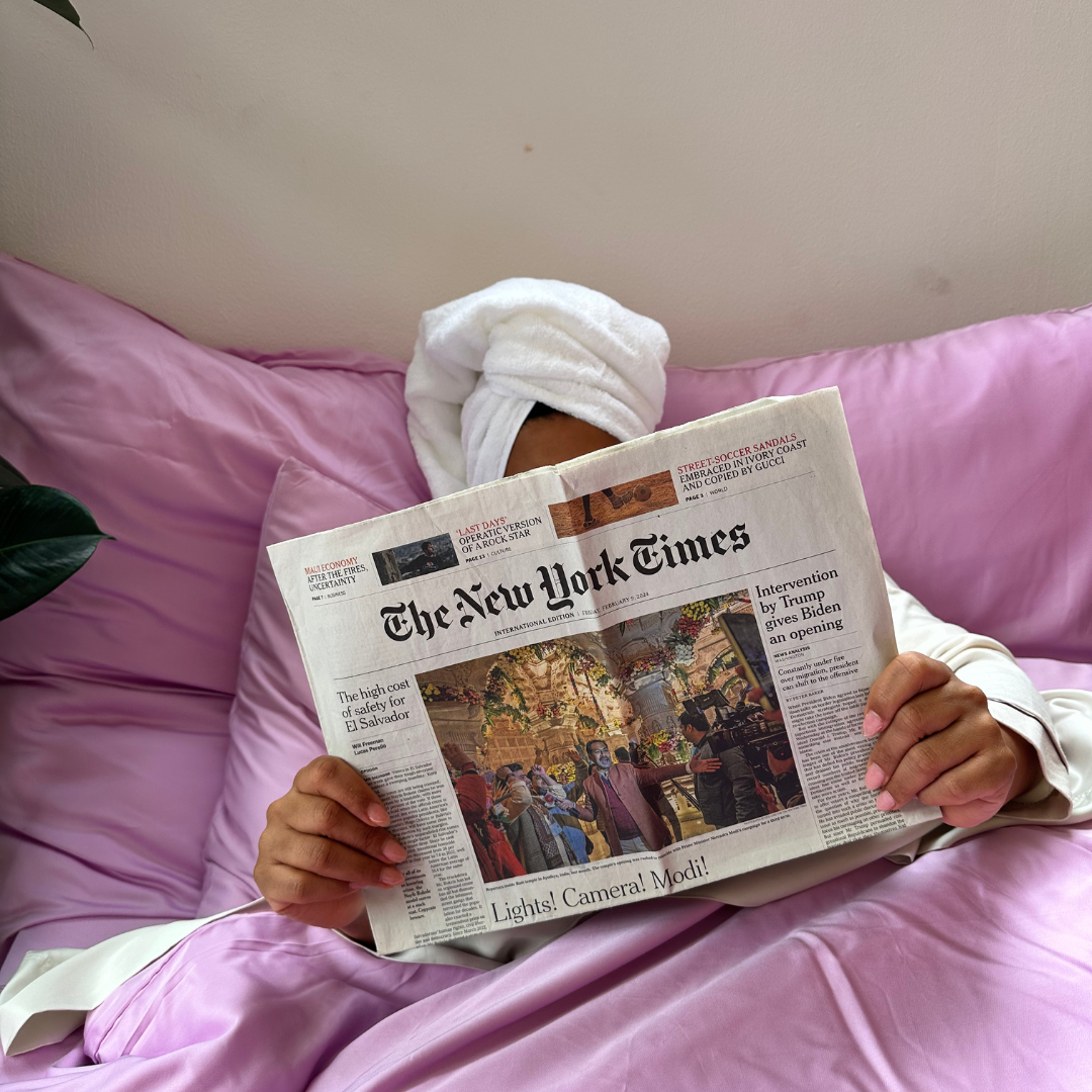 Momo sheets are 300 thread count, the equivalent of 1200 in cotton.